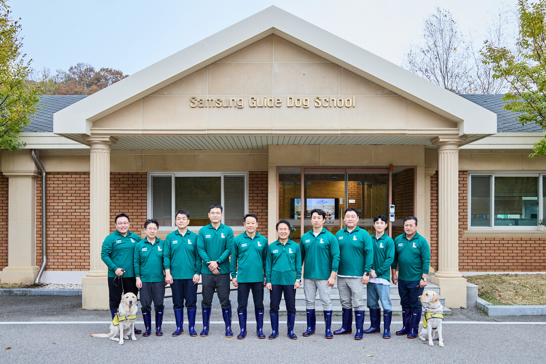 | ▲ 이문화 삼성화재 사장(오른쪽 다섯번째), 삼성화재 리본노동조합 홍광흠 위원장(오른쪽 네번째), 삼성화재노동조합 오상훈 위원장(왼쪽 다섯번째) 등 노사 관계자가 삼성화재 안내견학교 봉사활동을 마친 뒤 기념촬영을 하고 있다. [삼성화재 제공] |