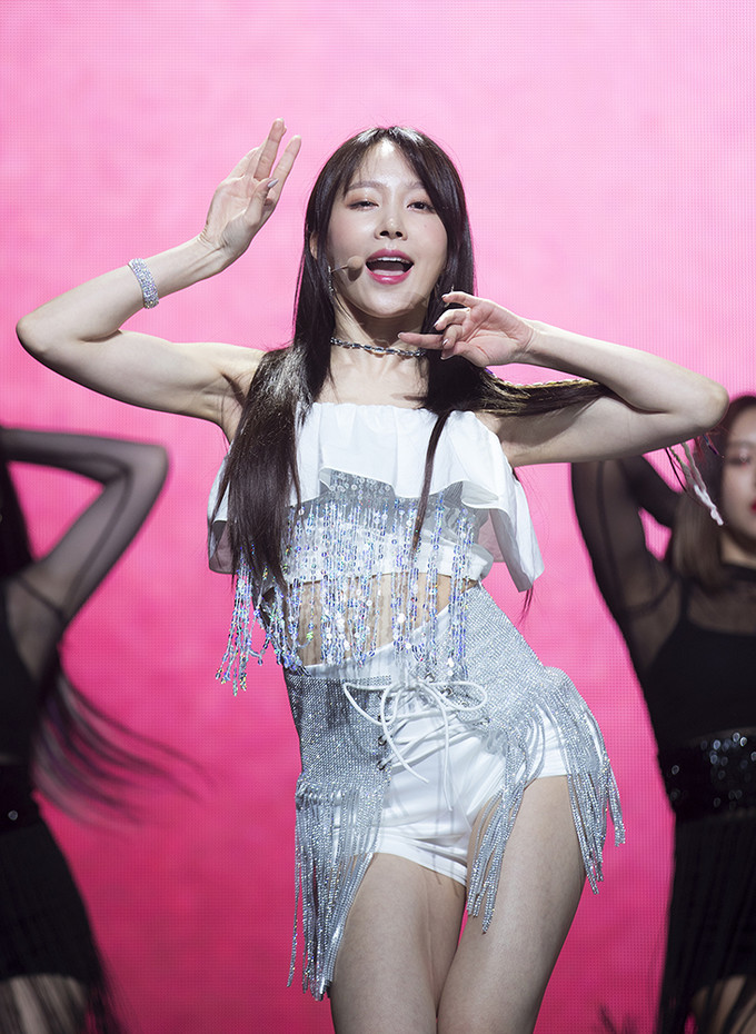 그룹 EXID 하니가 15일 오후 서울 용산구 블루스퀘어에서 열린 새 미니앨범 'WE(위)' 컴백 쇼케이스에서 포즈를 취하고 있다.