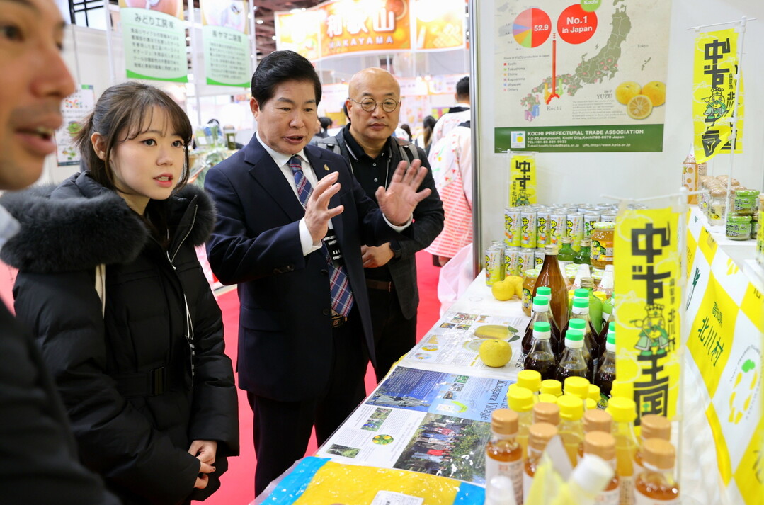 | ▲ 지난 3월 7일 공영민 고흥군수가 도쿄국제식품박람회서 고흥유자·김 홍보에 나서고 있다. [고흥군 제공] |