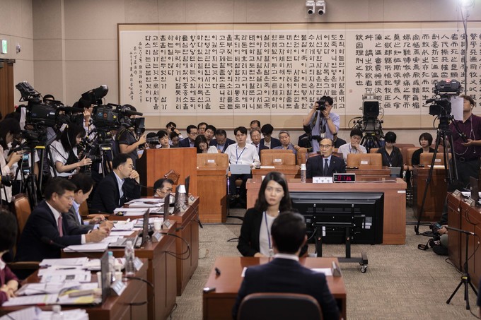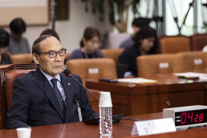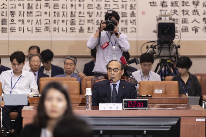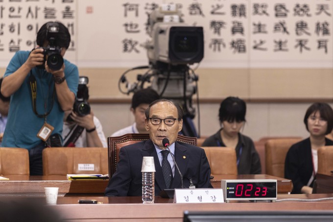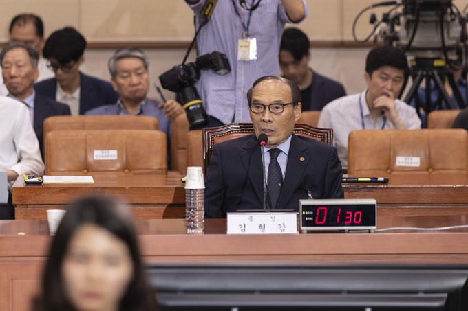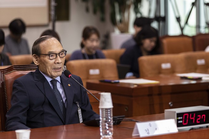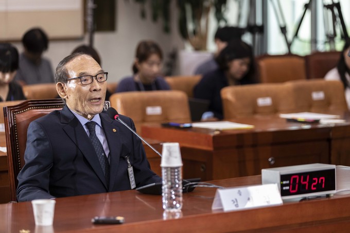 김형갑 웅동학원 이사가 6일 오후 서울 여의도 국회에서 열린 조국 법무부 장관 후보자 인사청문회에 증인으로 출석해 의원 질의에 답하고 있다.