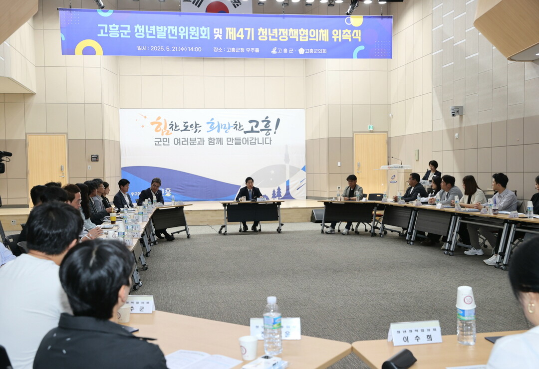 | ▲ 공영민 전남 고흥군수가 지난 21일 군청에서 청년정책의 수립·집행·평가 전 과정에 청년이 직접 참여하는 청년발전위원회와 제4기 청년정책협의체 위촉식을 주재하고 있다. [고흥군 제공] |