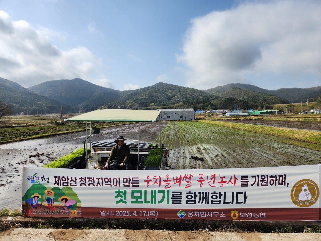 전남 보성군에서 2025년산 '웅치 올벼쌀' 생산을 위한 첫 모내기가 이뤄졌다.