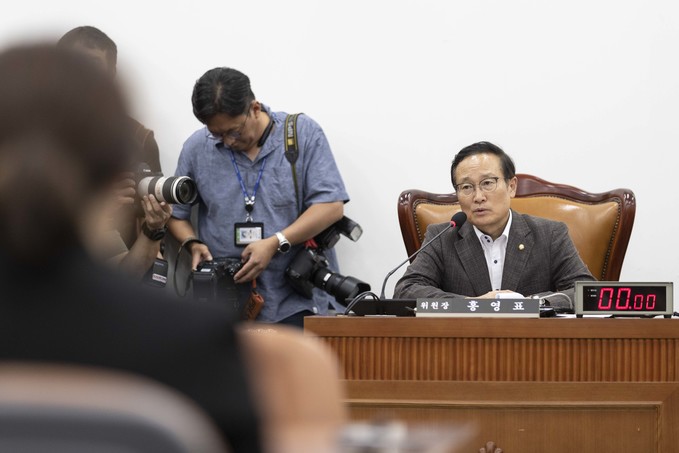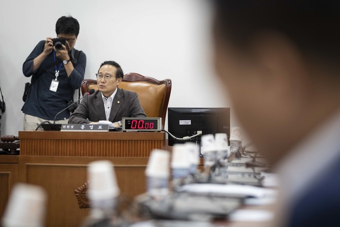 더불어민주당 홍영표 위원장이 20일 오후 서울 여의도 국회에서 열린 정개특위(정치개혁특별위원회)회의를 주재하고 있다.