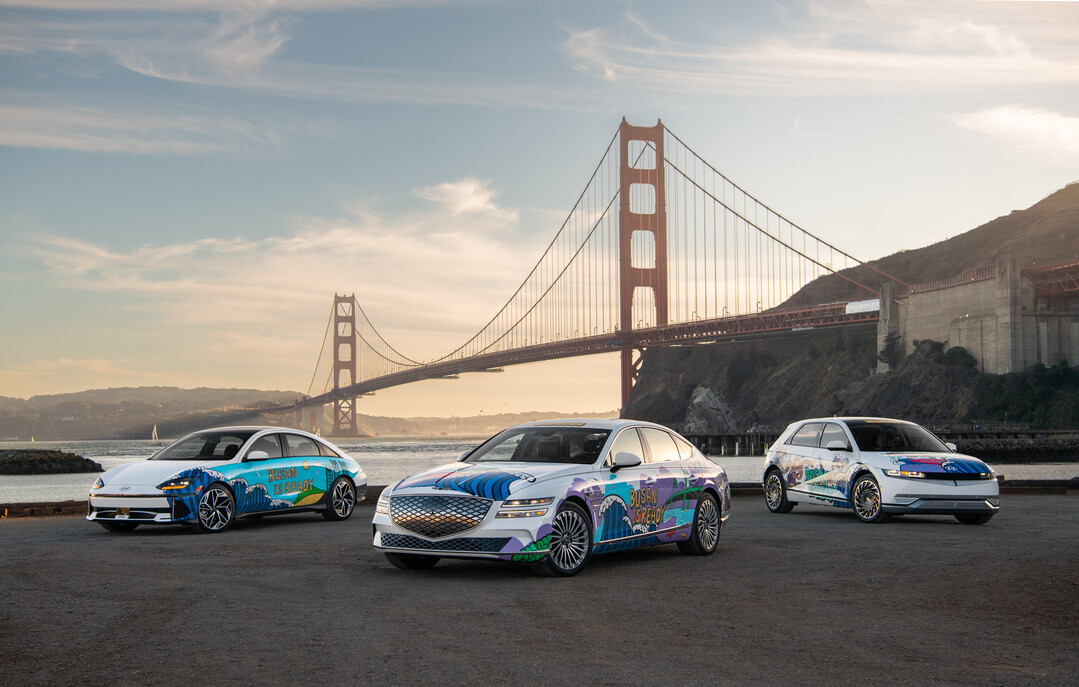 | ▲ 부산엑스포를 알리는 현대차그룹 아트카 차량(아이오닉 5, 아이오닉 6, 제네시스 G80 전동화 모델)이 미국 샌프란시스코 주요 지역을 순회하며 부산을 알리고 있다. [현대차그룹 제공] |