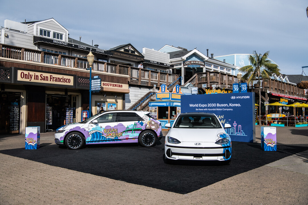| ▲ 현대차그룹이 제작한 아트카 차량이 미국 샌프란시스코의 랜드마크인 ‘피어 39’(Pier 39)에서 부산엑스포를 알리는 모습 [현대차그룹 제공] |