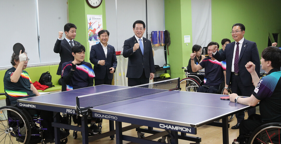 김영록 지사는 이날 순천장애인국민체육센터를 방문해 전국장애인체전 전남 대표로 출전하는 오영종 탁구 감독과 선수들을 만나 선전을 당부하며 응원했다.