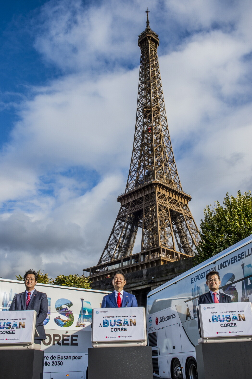 LG는 지난 6일부터 파리 전역에서 2030대의 ‘부산엑스포 버스’를 운영 중이다. 부산엑스포 버스 2대는 2층 대형 버스다.