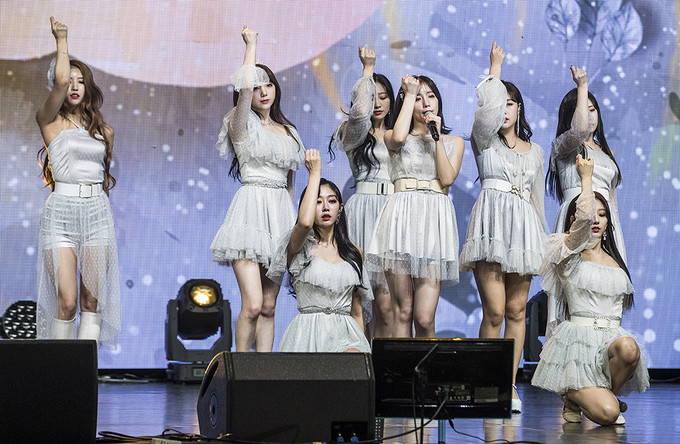 그룹 러블리즈가 26일 광진구 예스24 라이브홀에서 열린 미니 5집 '생츄어리(SANCTUARY)' 발매 기념 쇼케이스에서 무대를 선보이고 있다.