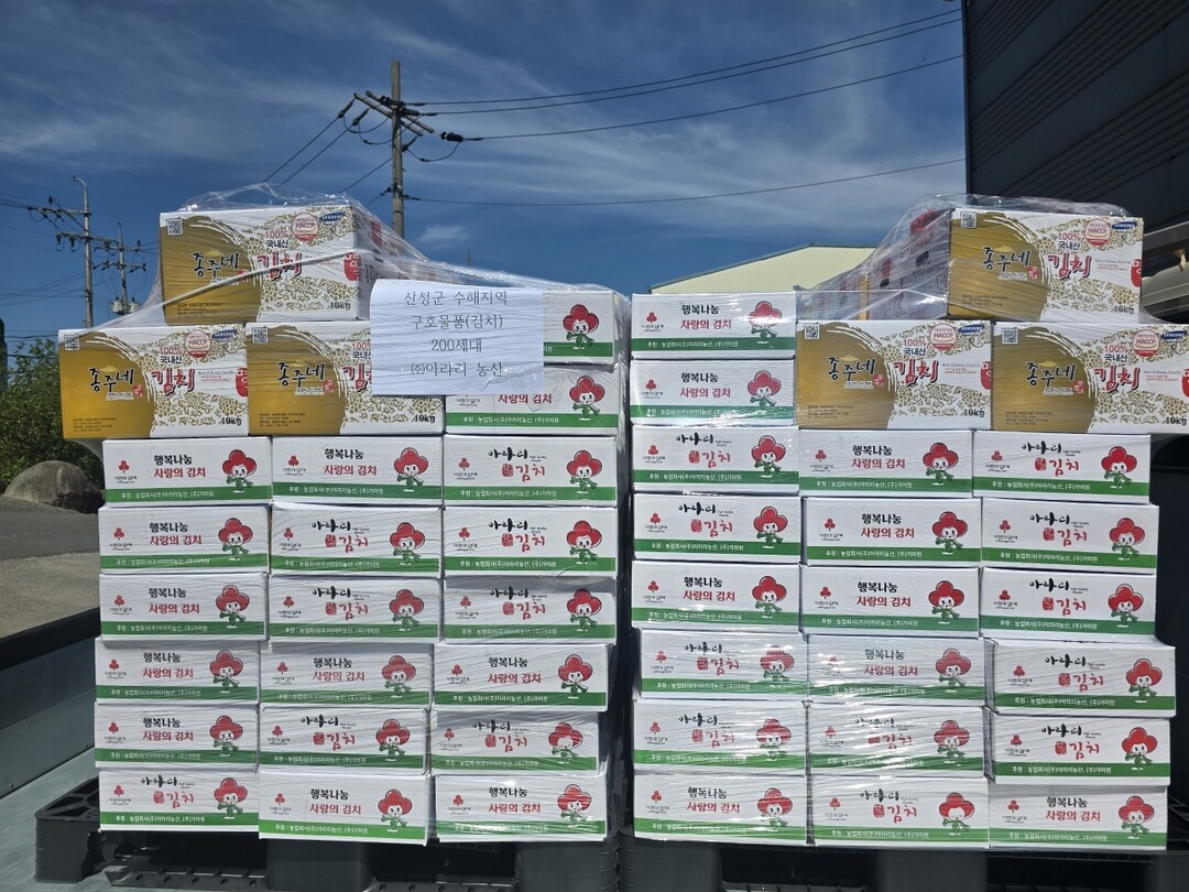 경남 함안군 군북면 ㈜아라리 농산(대표 허금숙)은 30일 폭우 피해를 입은 산청군 신등면 수해 가구 200세대에게 김치 1200㎏을 기탁했다.