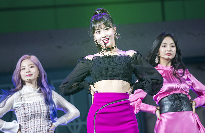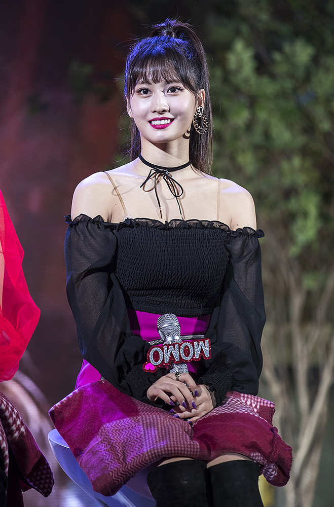 그룹 트와이스 모모가 5일 오후 서울 강서구 KBS아레나에서 열린 미니 6집 ‘YES or YES’ 쇼케이스에서 포즈를 취하고 있다.