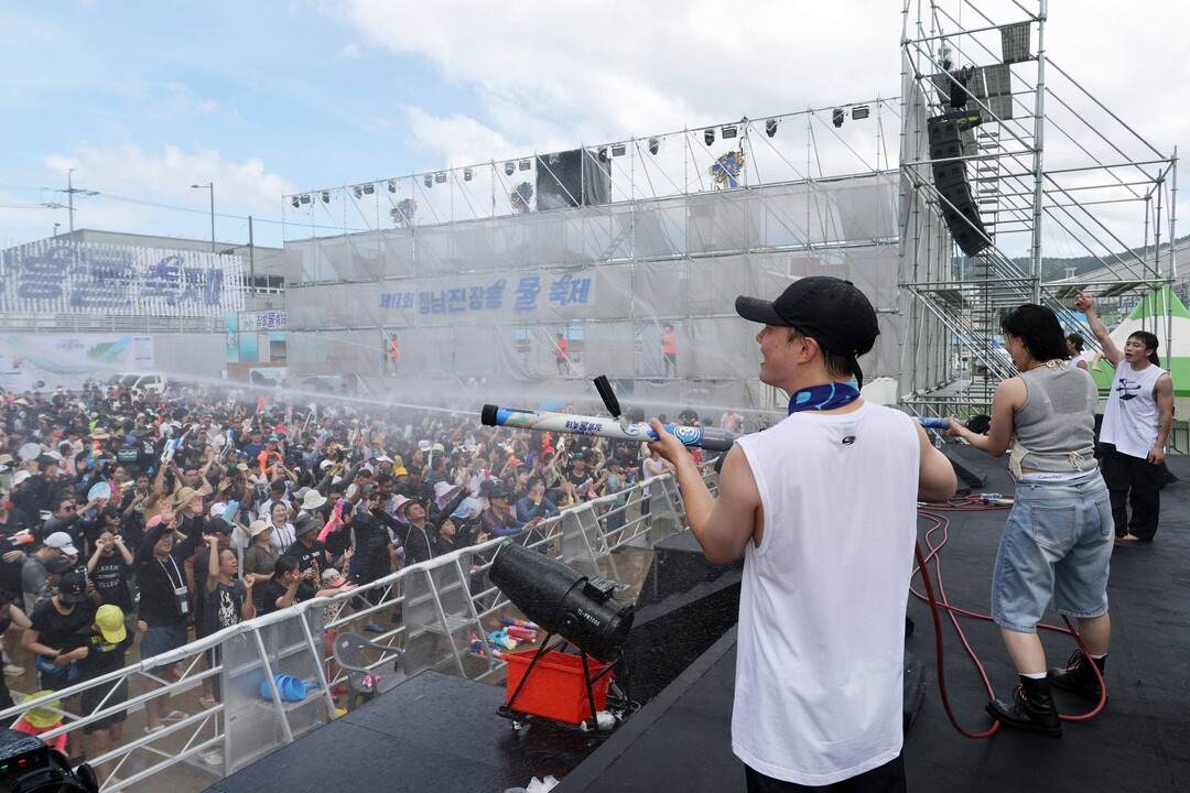 | ▲ 장흥 탐진강변에서 제17회 정남진 장흥 물축제 '지상 최대의 물싸움'이 펼쳐지고 있다. [장흥군 제공] |
