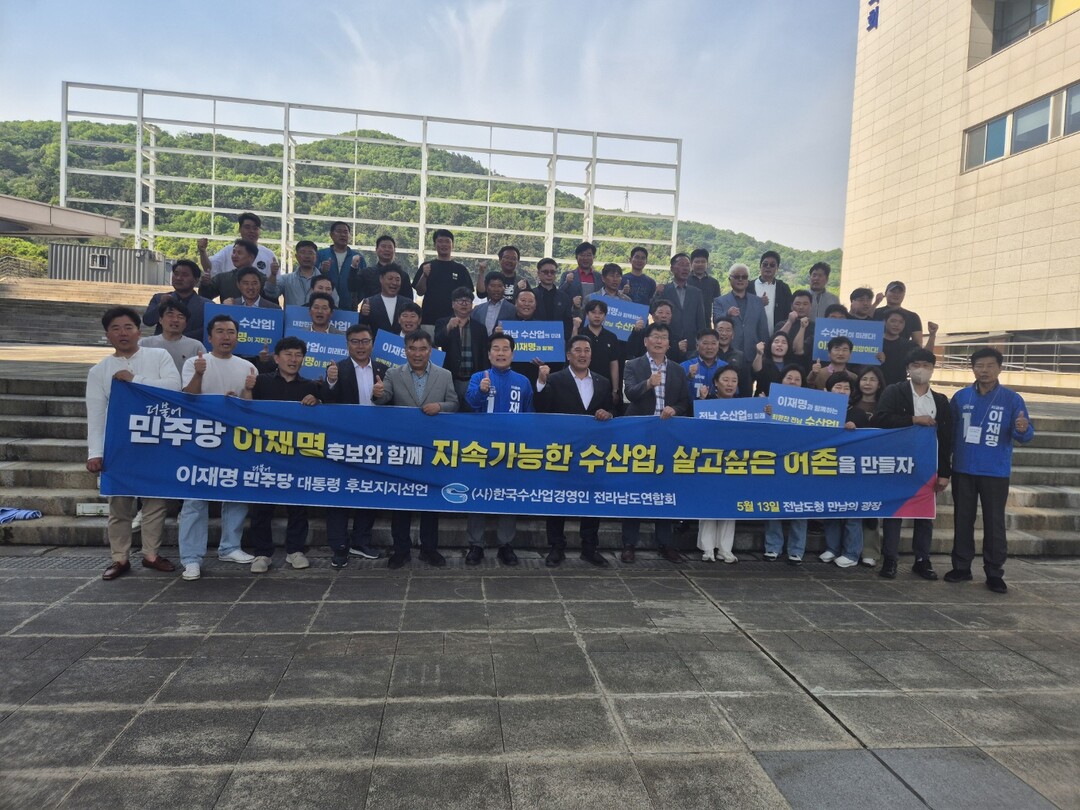 (사)한국수산업경영인 전라남도연합회가 13일 더불어민주당 이재명 대선 후보에 대한 지지를 선언했다.