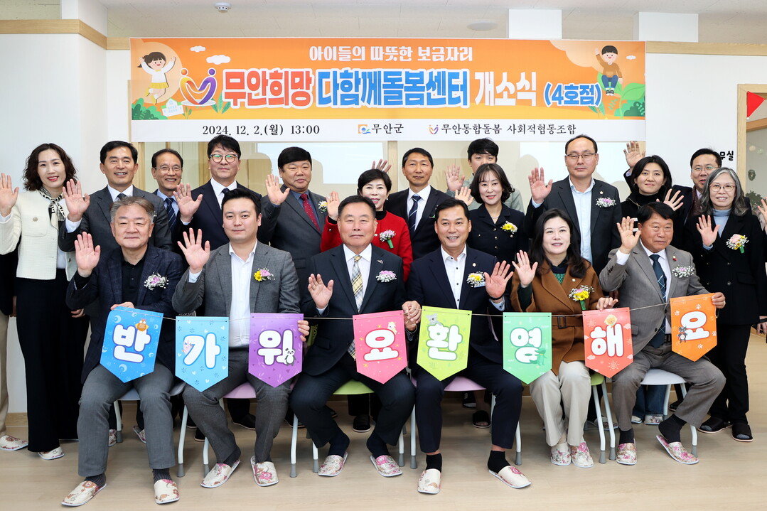 | ▲ 지난해 12월2일 김산 무안군수와 이호성 무안군의회 의장 등이 참석한 가운데 무안희망 다함께돌봄센터 4호점 개소식을 열고 있다. [무안군 제공] |