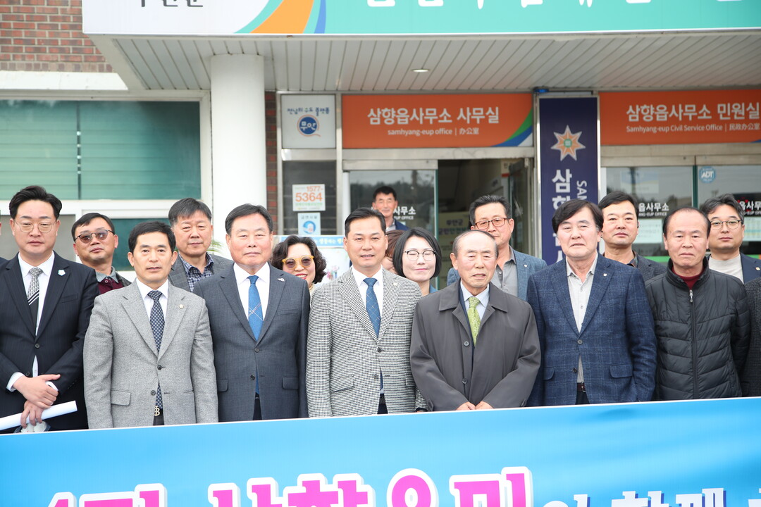 | ▲ 10일 이호성 무안군의회 의장과 김산 무안군수 나광국 전남도의원 등이 '삼향읍민과 함께하는 군민과의 대화'를 끝낸 뒤 주요 참석자와 함께 사진촬영을 하고 있다. [무안군의회 제공] |