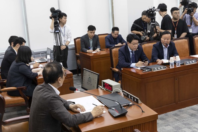 자유한국당 김재원 위원(오른쪽)이 20일 오후 서울 여의도 국회에서 열린 정개특위(정치개혁특별위원회)회의에 참석해 의사진행발언을 하고 있다.