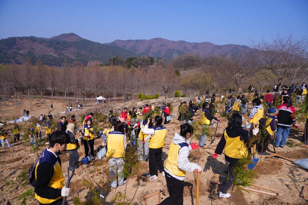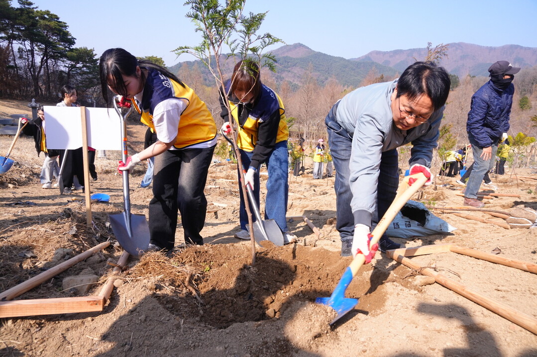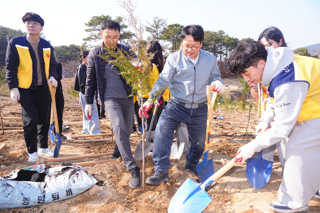 | ▲ 강기정 광주광역시장이 제80회 식목일을 앞두고 21일 광주시 지방정원 제1호 광주호호수생태원에서 자원봉사자, 직원과 나무를 심고 있다. [광주광역시 제공] |