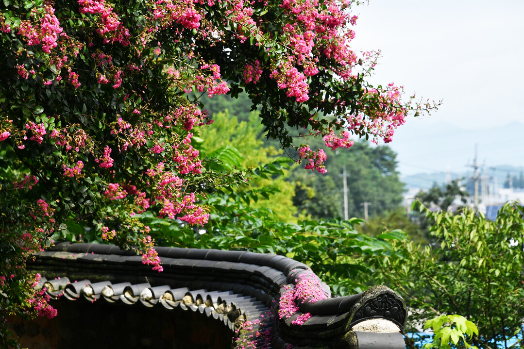 | ▲ 19일 전라남도 기념물인 담양 '죽림재'에 백일홍이 활짝 펴 여름 정취 속에 붉은 꽃물결이 장관을 이루고 있다. [담양군 제공] |