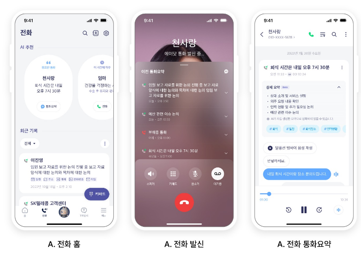 'A. 전화’는 AI가 통화 내용의 맥락을 분석하고 통화유형과 요약까지 제공하는 새로운 전화 서비스다.