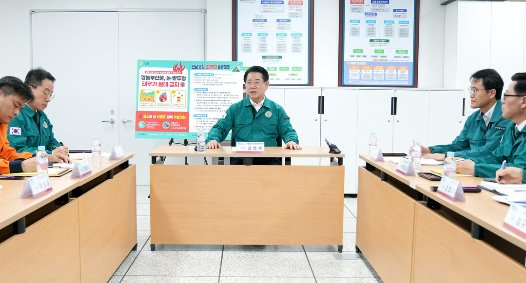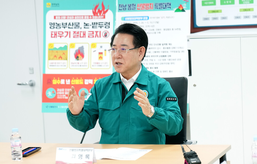 | ▲ 김영록 전라남도지사가 31일 전남 동부청사 산불방지특별대책본부에서 열린 청명·한식 대비 전라남도 산불방지특별대책 점검 회의를 주재하고 있다. [전남도 제공] |