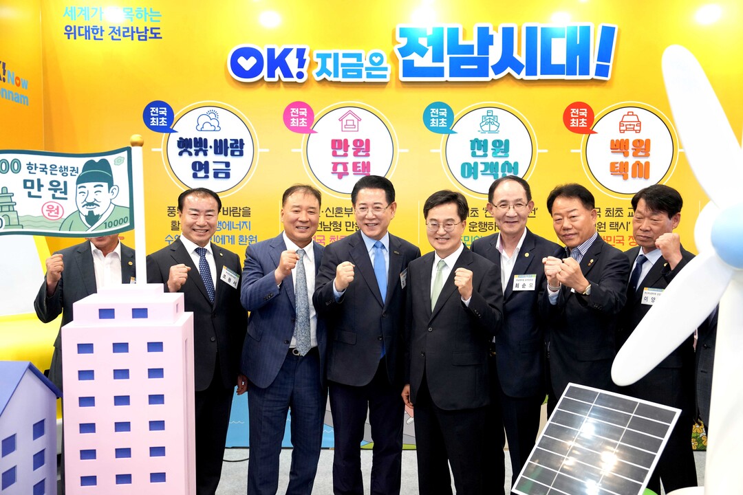 | ▲ 김영록 전라남도지사가 25일 부산 벡스코에서 개최된 '2025 로컬 콘텐츠 페스타' 행사 전남홍보관에서 주요 내빈들과 기념촬영을 하고 있다. [전남도 제공] |