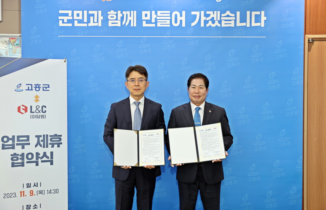 전남 고흥군은 지난 9일 군수 집무실에서 L&C(아담원)와 업무제휴 협약을 체결했다고 밝혔다.