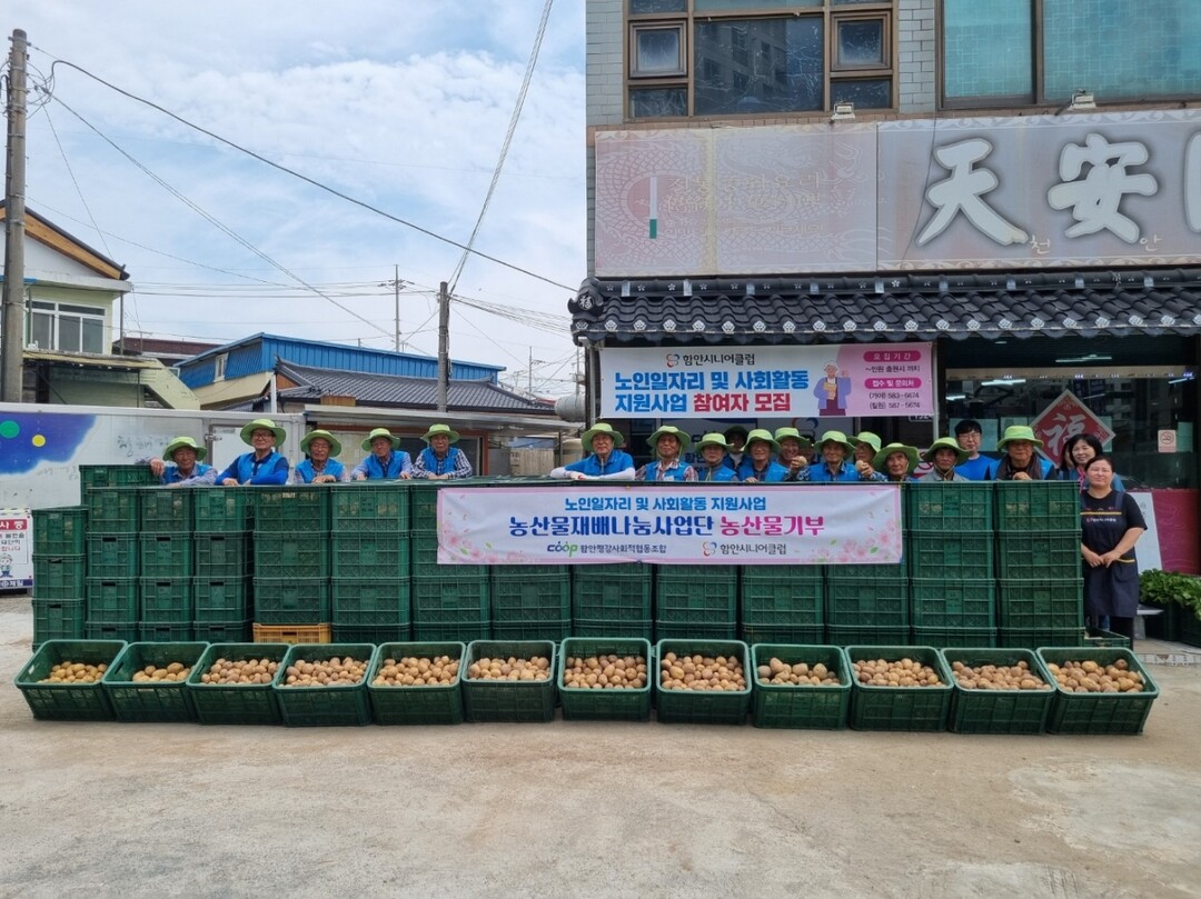 함안시니어클럽 농산물재배나눔봉사단은 19일 직접 재배한 감자 15㎏들이 100박스를 관내 복지시설에 기부했다.