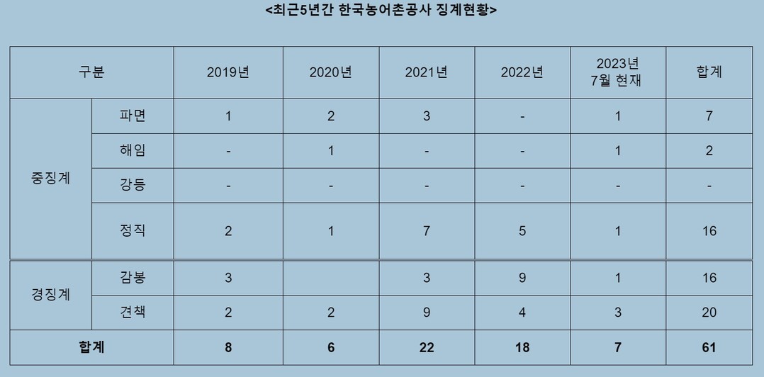 | ▲ 한국농어촌공사 징계현황 [위성곤 의원실 제공] |
