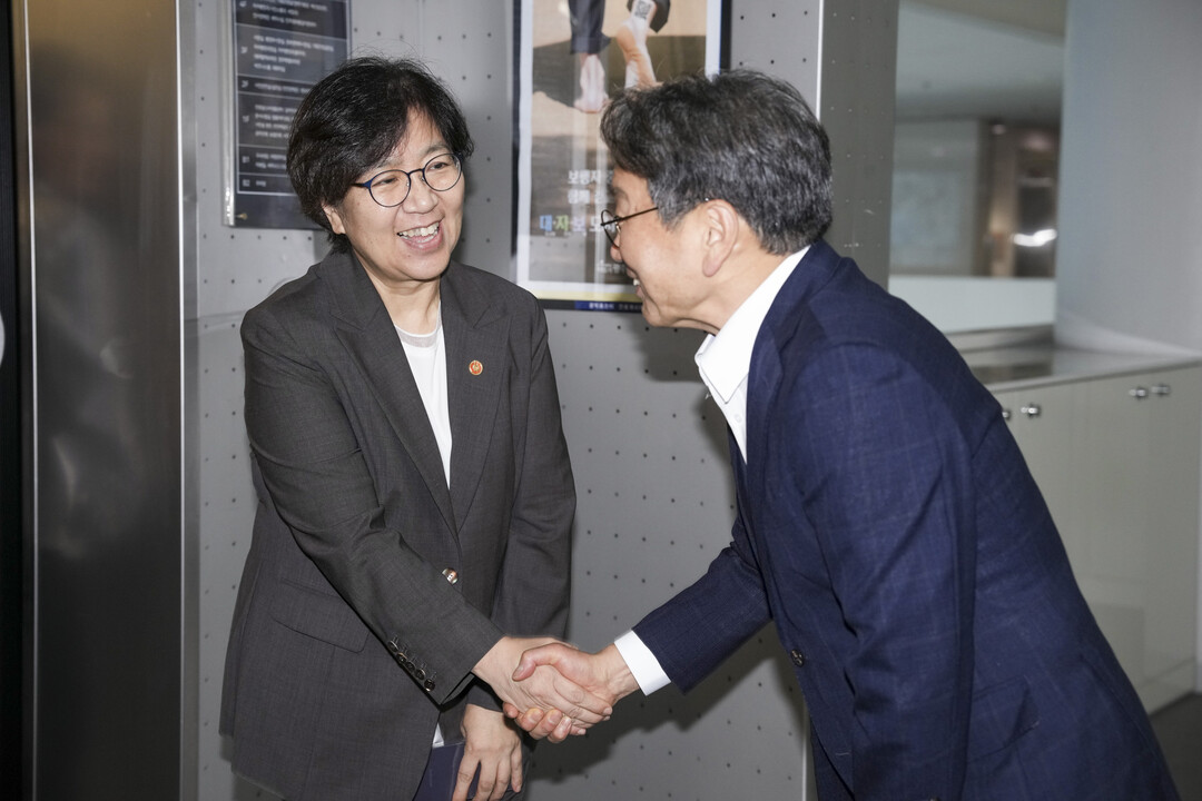 | ▲ 강기정 광주광역시장이 6일 오후 광주시 통합돌봄 정책 현장간담회 참석을 위해 시청을 방문한 정은경 보건복지부 장관을 맞이하고 있다. [광주광역시 제공] |