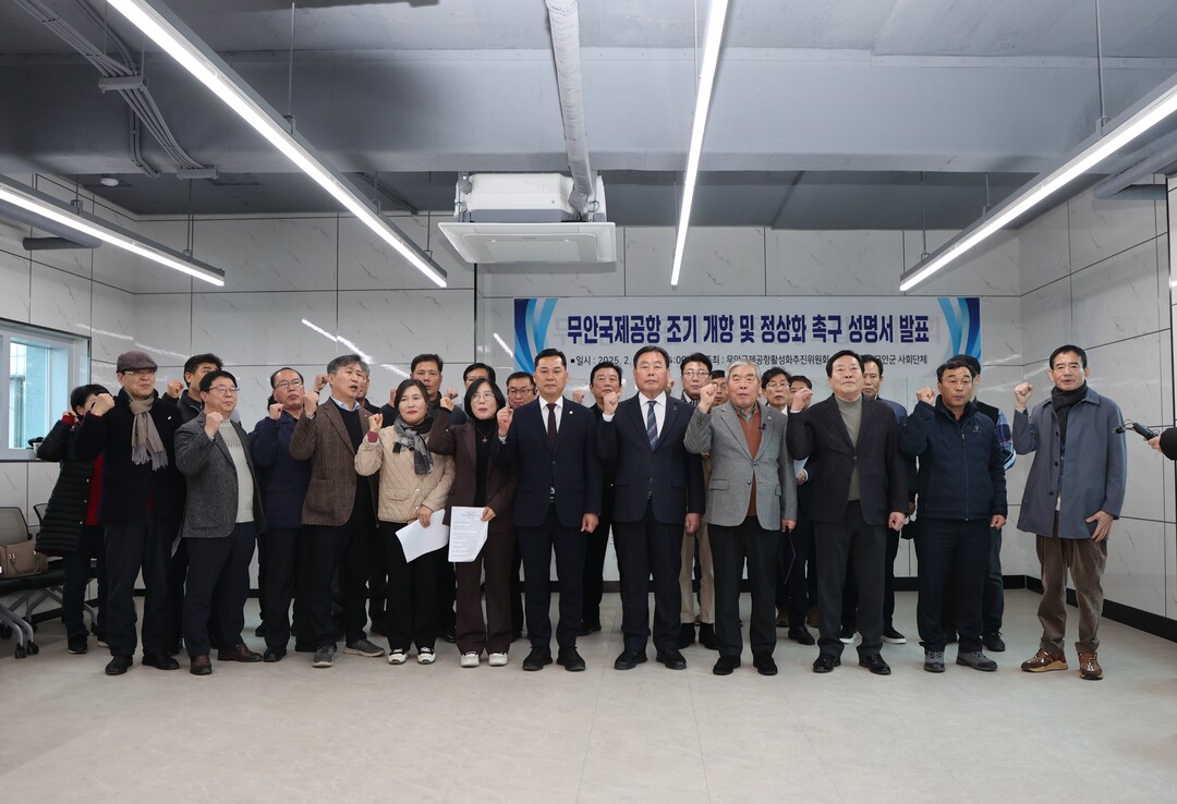 무안국제공항활성화 추진위원회가 25일 무안국제공항 조기 개항과 정상화를 촉구하는 공동성명서를 발표했다.