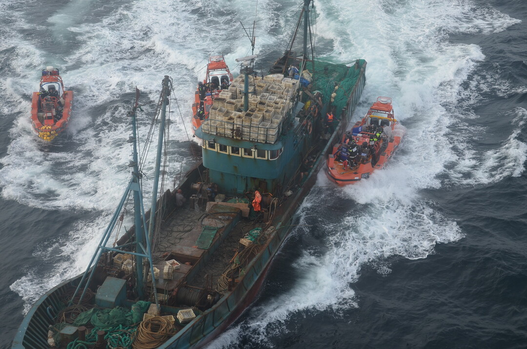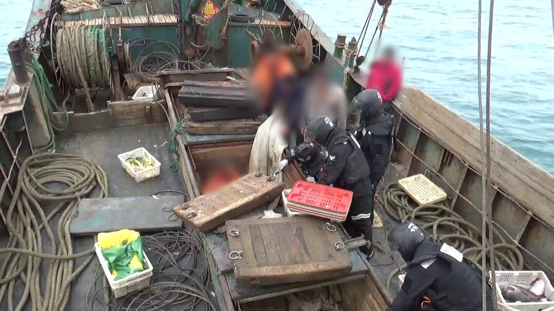| ▲ 서해지방해양경찰청이 목포해경 군산해경과 함께 지난 2월 25일부터 나흘동안 외국어선 26척을 검문해, 조업일지 부실기재 혐의로 127톤급 쌍타망 중국어선 1척을 나포하고 있다. [서해해경청 제공] |