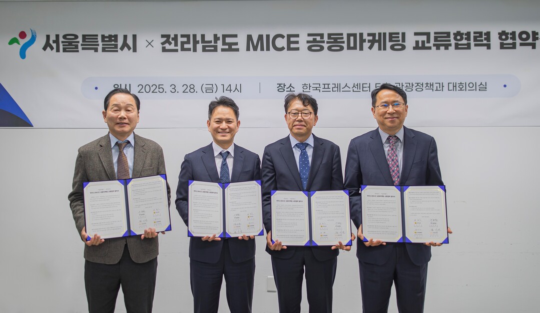 전라남도가 국내외 마이스 행사 유치 경쟁력 강화와 관광객 유치 확대를 위해 서울특별시, 전남관광재단, 서울관광재단과 'MICE 공동마케팅 교류협력 업무협약'을 지난 28일 서울시에서 체결했다.