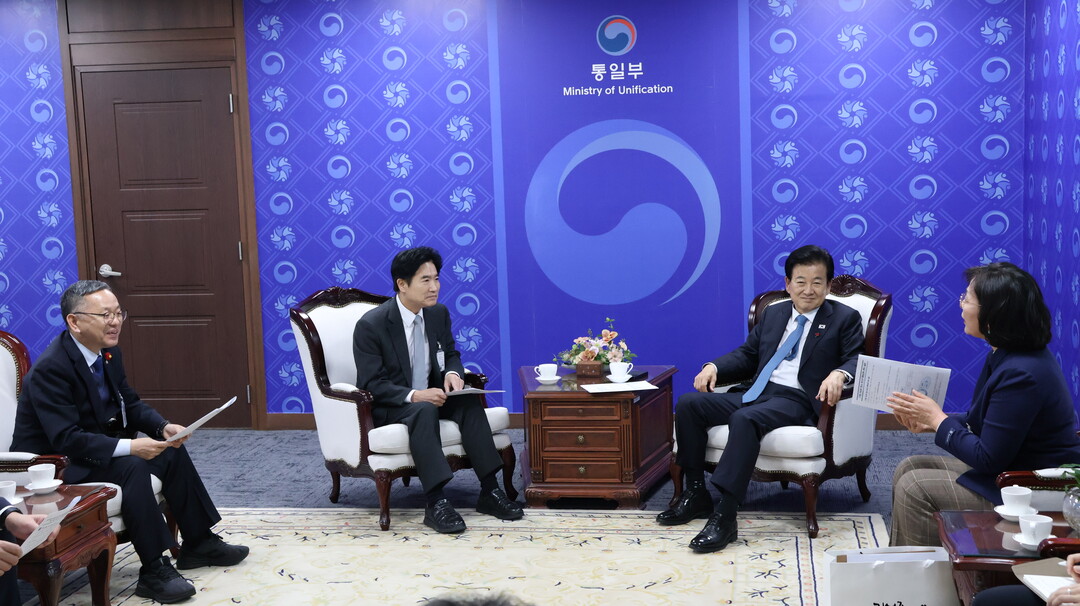 | ▲ 김대중 전남교육감과 서영옥 정책기획과장이 지난 25일 통일부를 방문해 정동영 통일부장관과 대화를 나누고 있다. [전남도 제공] |