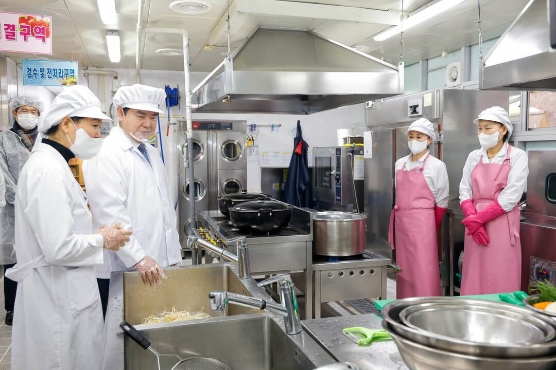 | ▲ 이정선 광주시교육감이 25일 진남유치원에서 신학기 대비 학교급식 특별점검을 하고 있다. [광주시교육청 제공] |