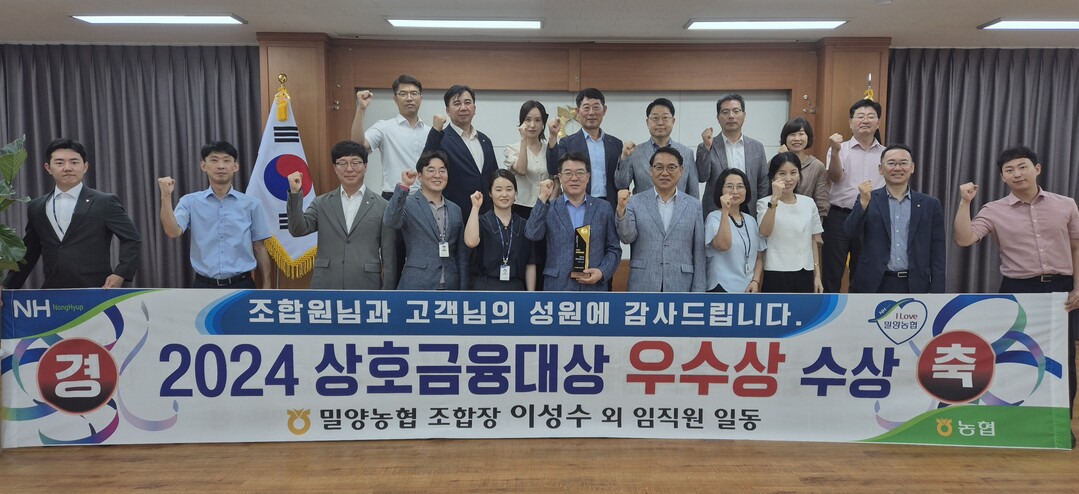 경남 밀양농협(조합장 이성수)은 25일 농협중앙회에서 주관한 '2분기 상호금융대상' 시상식에서 우수상을 수상하는 영예를 안았다고 27일 밝혔다.