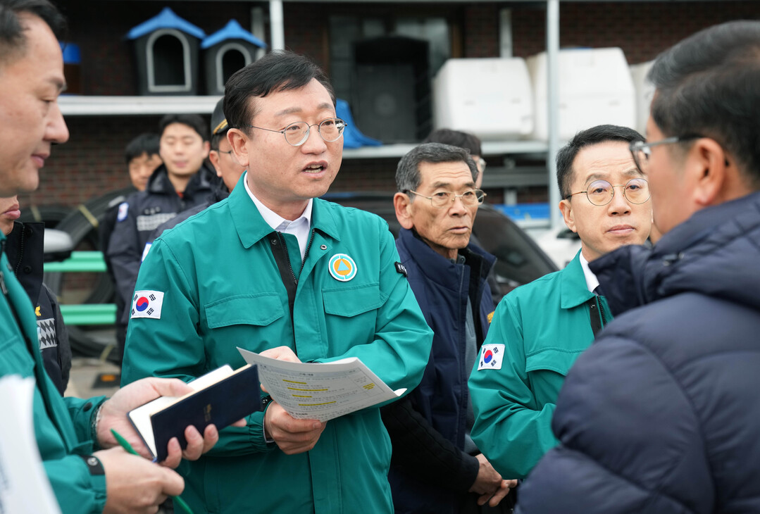 | ▲ 명창환 전라남도 행정부지사가 25일 해남 황산면 주택화재 현장을 방문, 애로사항을 청취하고 피해주민을 격려하고 있다. [전남도 제공] |