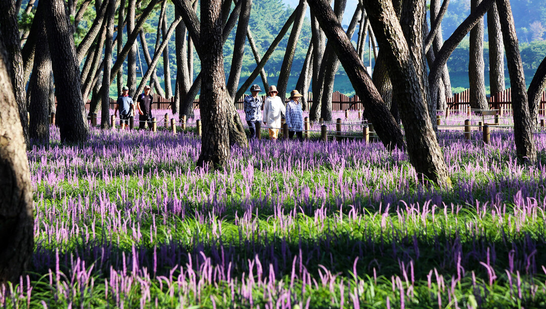여름철 삼문 송림숲을 거닐다 보면 시원한 솔바람과 보랏빛 향기를 만끽할 수 있어 지친 일상에서의 스트레스 해소와 가족, 연인, 친구 등과 함께 아름다운 추억을 만들 수 있다.