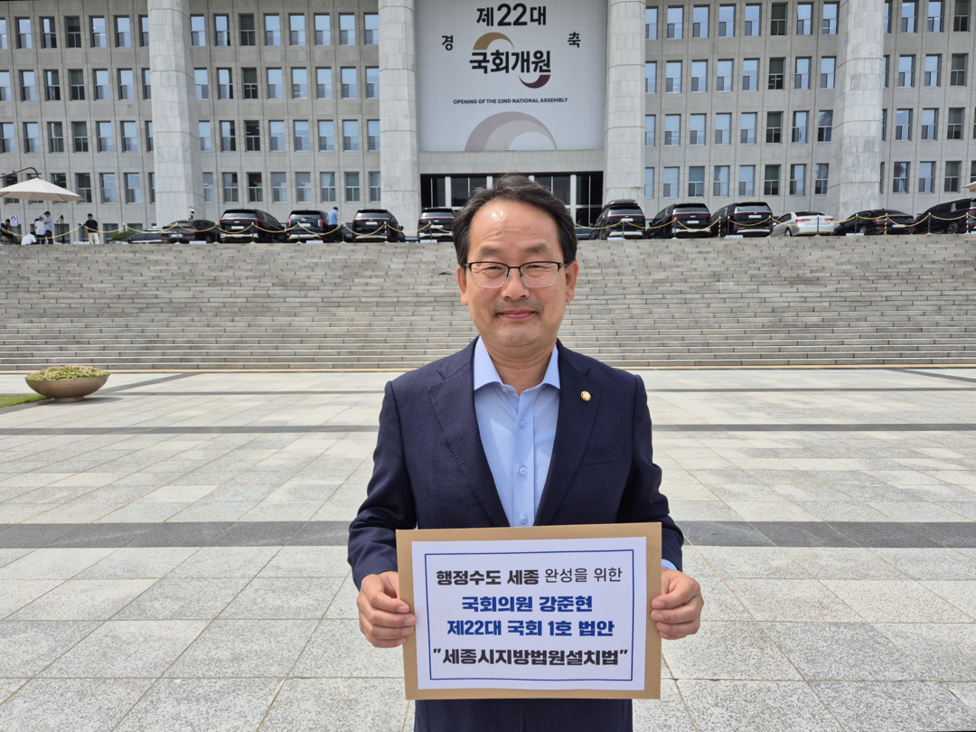 더불어민주당 강준현 의원(세종시을)이 제22대 국회1호 법안으로 '세종지방법원 설치법'을 대표발의했다.