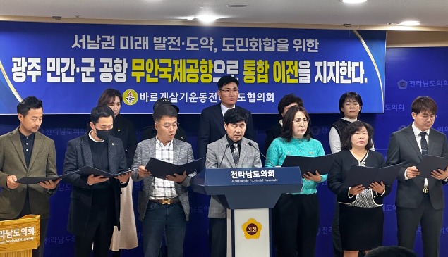 바르게살기운동 전남도협의회는 이날 전남도의회에서 "전남 서남권 미래 발전과 도민 화합을 위해 광주 민간·군공항의 무안국제공항 통합 이전 문제를 조속히 매듭지어야 한다"고 촉구했다.