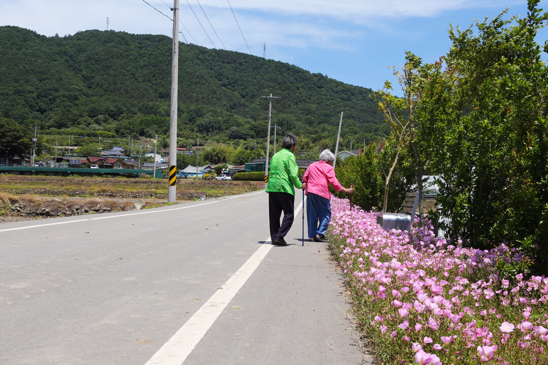 | ▲ 지난 5일 마을 주민이 '청정전남 으뜸마을 만들기' 사업으로 전남 보성군 벌교읍 옥전마을에 심은 분홍 달맞이꽃을 보며 흐뭇해 하고 있다. [보성군 제공] |
