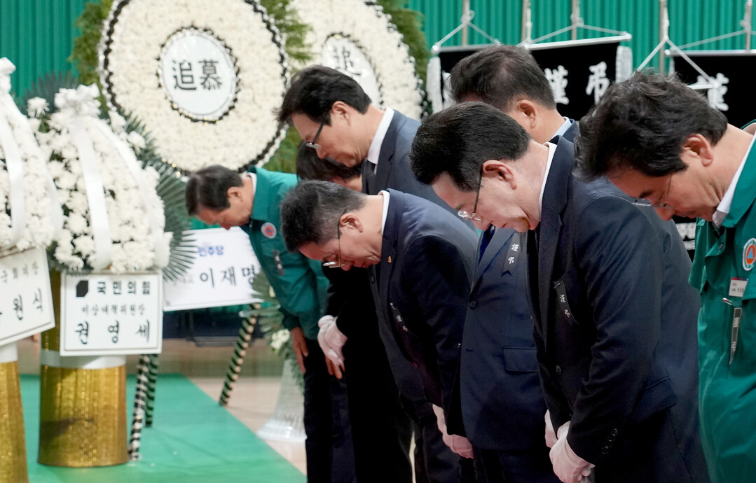 | ▲ 김영록 전라남도지사가 27일 경남 창녕군 창녕군민체육관에 마련된 '산청군 산불진화대 사고 희생자 합동분향소'를 찾아 희생자들의 넋을 기리고 있다. [전남도 제공] |