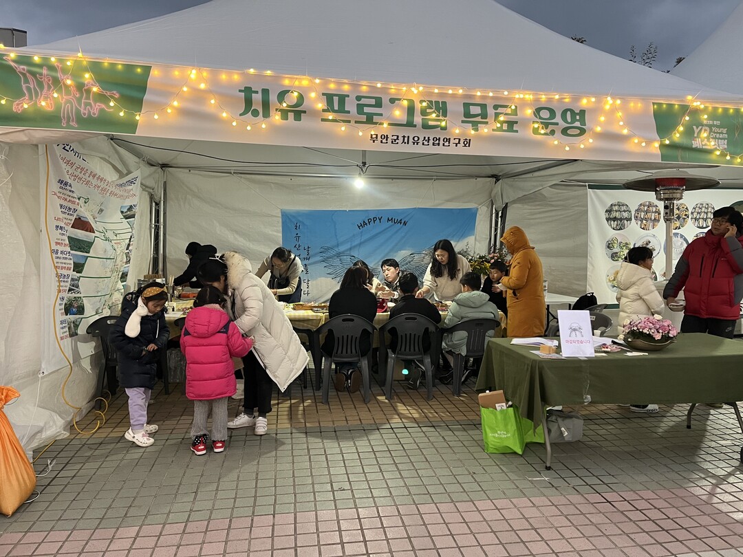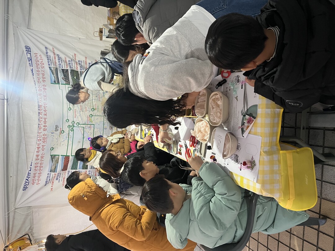 | ▲18일 무안 YD페스티벌에서 무안군치유산업연구회가 초등학생에게 '플라워 왁스 타블렛' 만들기 무료 체험을 하고 있다. [강성명 기자] |
