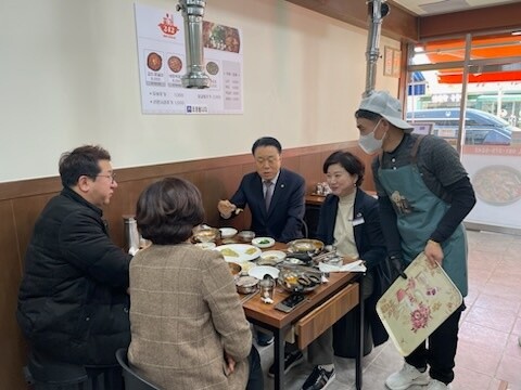 | ▲ 지난 17일 구복규 전남 화순군수가 골목상권 활성화를 위해 자활기업인 찌개 242를 직접 찾아 애로사항을 청취하고 있다. [화순군 제공] |