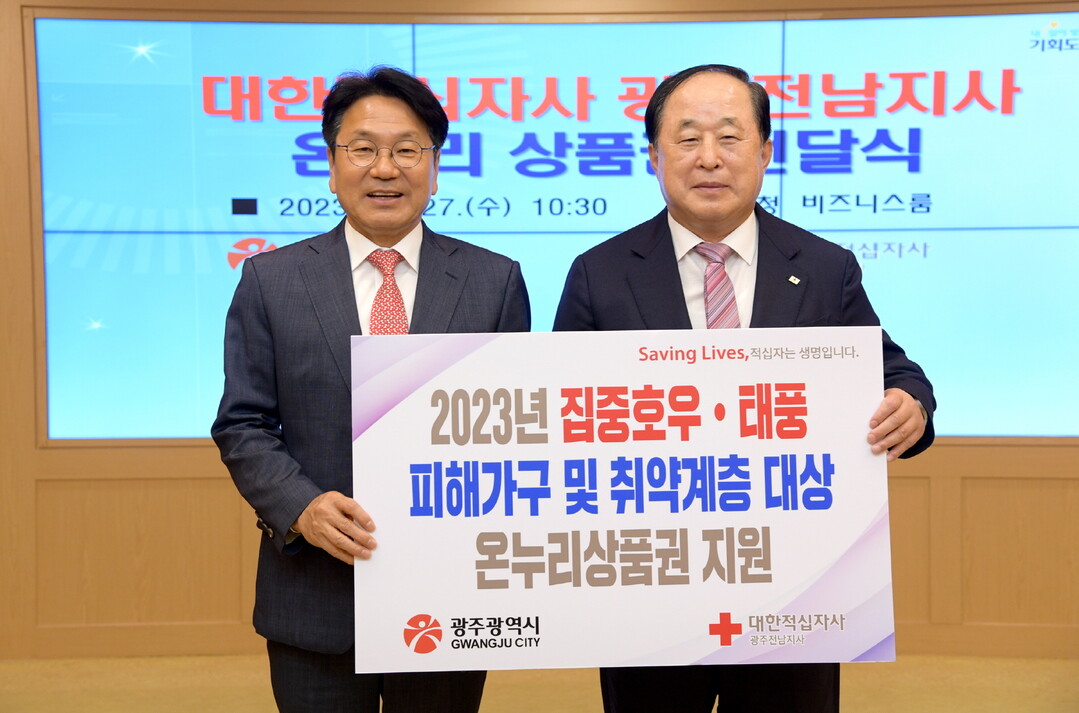 대한적십자사 광주전남지사가 광주광역시에 집중호우·태풍 피해세대와 취약계층을 지원하기 위해 인도주의 성금을 전달했다고 27일 밝혔다.