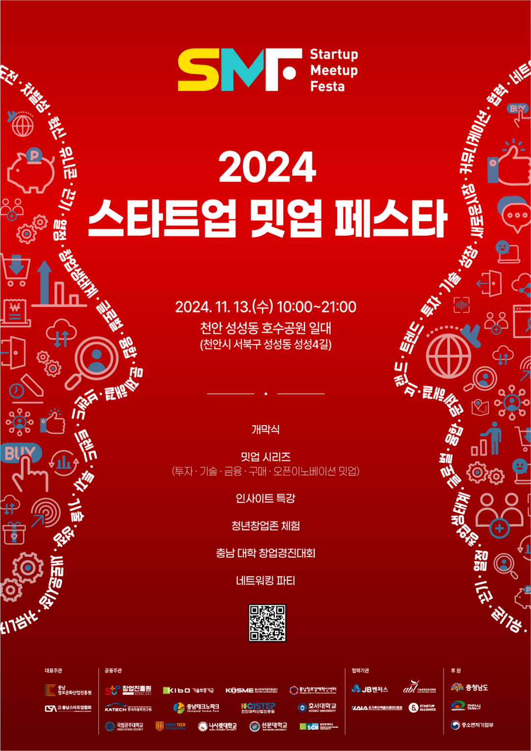 충남 스타트업이 성장의 발판을 마련할 수 있도록 지원하는 2024스타트업 밋업 페스타가 13일 충남 천안 성성호수공원 일대에서 열린다.
