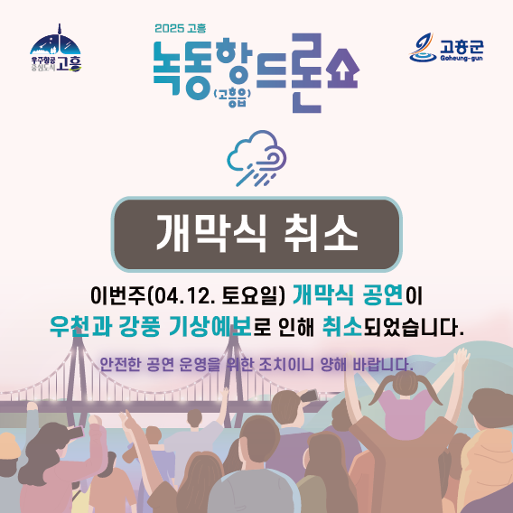 오는 12일 개최될 예정이었던 고흥군 녹동항 드론쇼 개막식이 기상악화로 취소됐다.