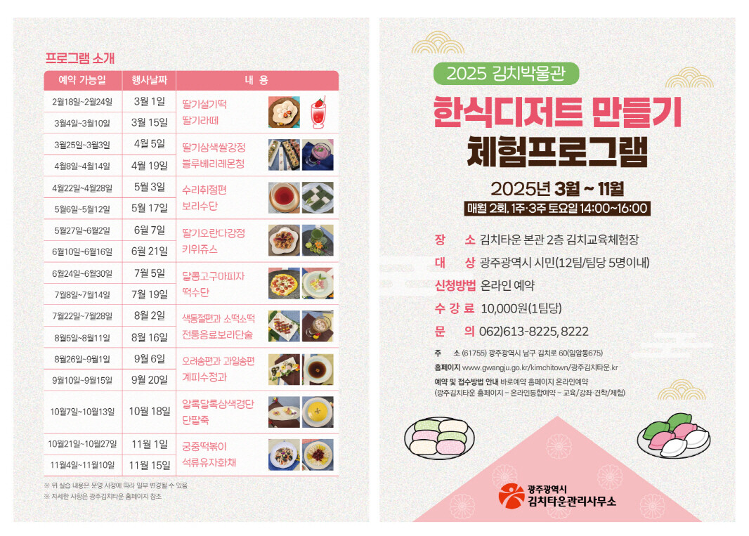 | ▲ 김치타운 한식디저트만들기 안내문 [광주광역시 제공] |