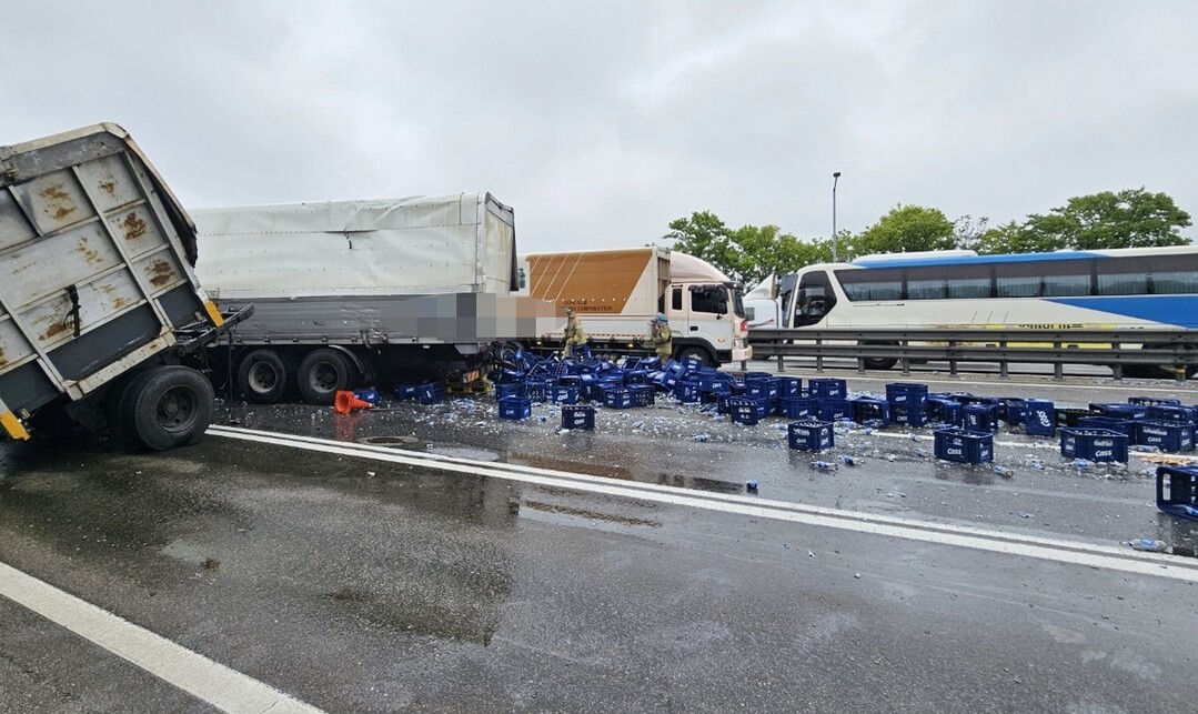 이로인해 차량 3대가 연쇄적으로 추돌하고 트레일러에 실려있던 맥주상자가 도로에 쏟아져 하행선이 한때 극심한 정체현상을 보였다. 다행히 별다른 인명피해는 없었다.