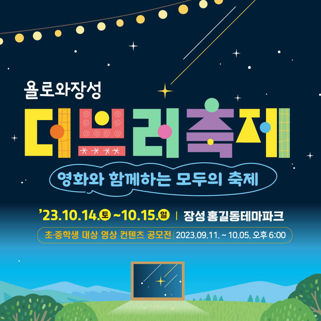 전남 장성군 홍길동테마파크에서 장성군농촌신활력플러스사업단의 ‘욜로와장성 더브러축제’가 14일~15일 열린다. 온 가족이 관람할 수 있는 영화 상영과 학생들이 참여한 영상공모제가 펼쳐질 예정이다.