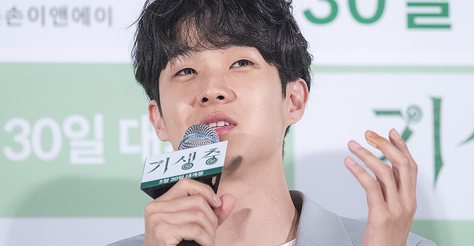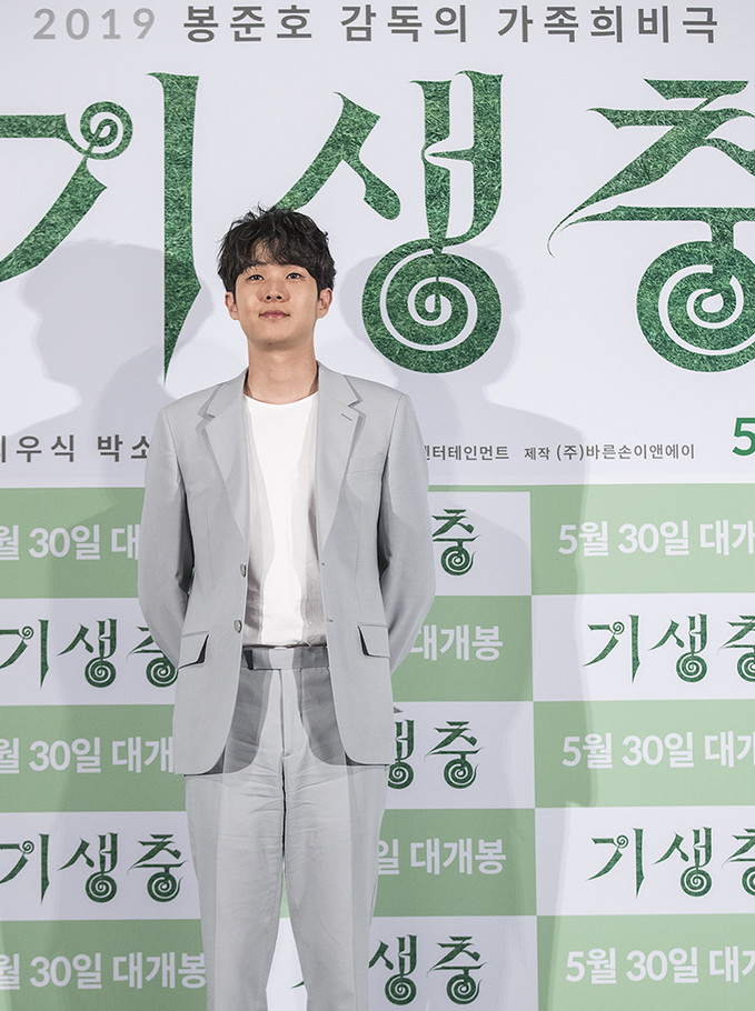 칸 국제영화제에서 황금종려상을 수상한 영화 ‘기생충'의 배우 최우식이 28일 오후 서울 용산구 용산CGV에서 열린 언론배급시사회에서 질문에 답하고 있다.