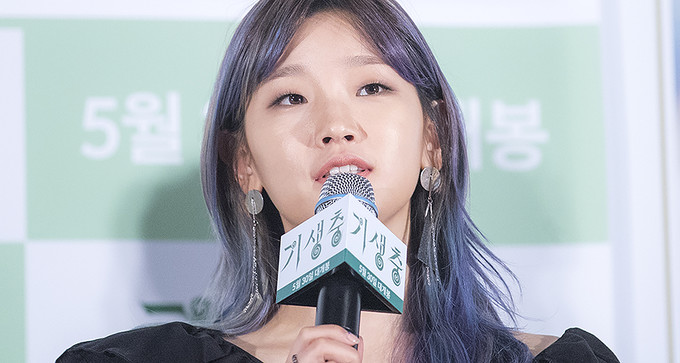 칸 국제영화제에서 황금종려상을 수상한 영화 '기생충'의 배우 박소담이 28일 오후 서울 용산구 용산CGV에서 열린 언론배급시사회에서 질문에 답하고 있다.